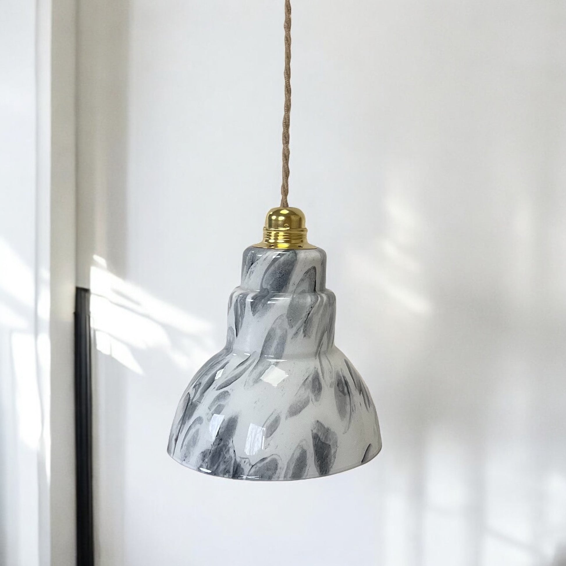 La suspension Jacques allie subtilité et élégance avec un abat-jour en verre, parsemé de taches délicates, évoquant un coup de pinceau artistique. Les teintes blanches et grises se marient harmonieusement pour apporter douceur et modernité à cette pièce unique. Le câble en jute tressé complète le design avec une touche naturelle et authentique, ajoutant de la texture et de la chaleur à l'ensemble.